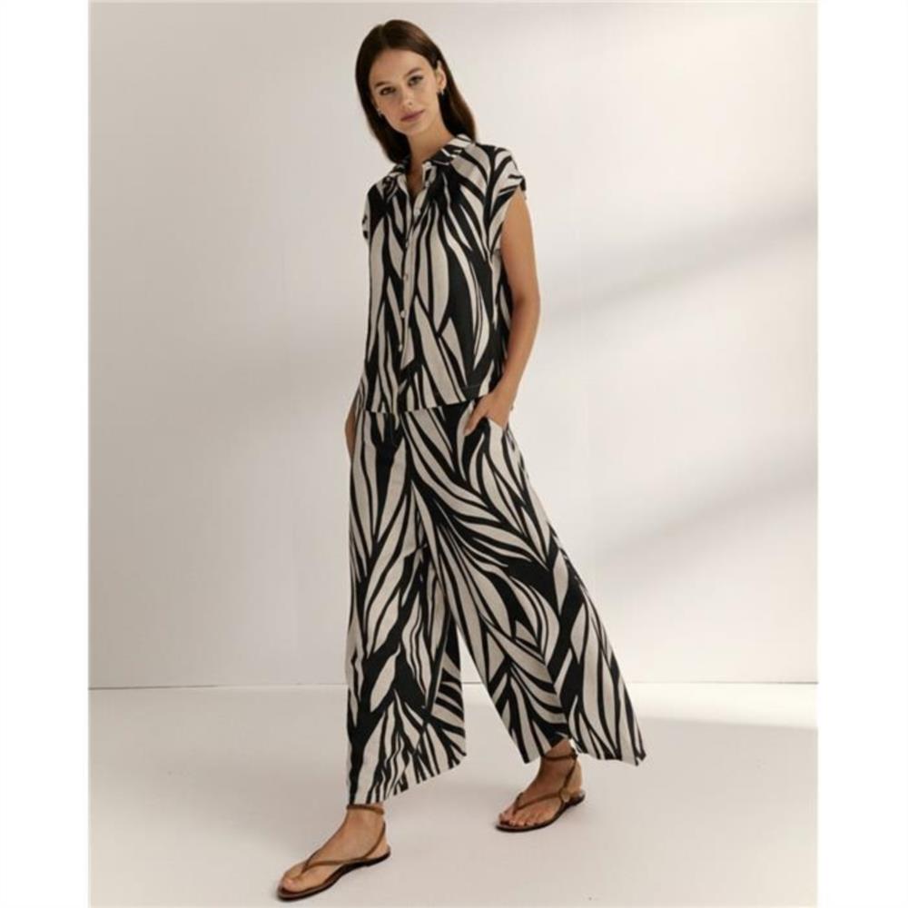 Pantalón ancho negro de mujer estampado tobillero PAZ TORRAS